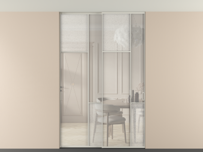 Во всех алюминиевых перегородках, независимо от типа установки, используется компланарный раздвижной механизм, благодаря которому декоративная крышка и полотно находятся в одной плоскости.