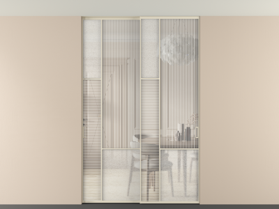 Во всех алюминиевых перегородках, независимо от типа установки, используется компланарный раздвижной механизм, благодаря которому декоративная крышка и полотно находятся в одной плоскости.