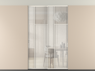 Во всех алюминиевых перегородках, независимо от типа установки, используется компланарный раздвижной механизм, благодаря которому декоративная крышка и полотно находятся в одной плоскости.