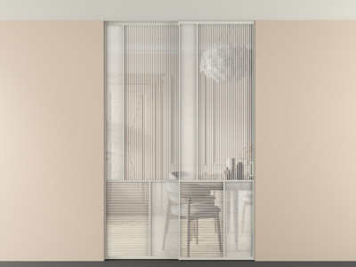 Дополнительно на раздвижную двустворчатую перегородку вдоль стены и четырехстворчатую перегородку внутри проема с двумя неподвижным полотнами можно установить механизм синхронного открывания — при открывании одной створки, вторая открывается автоматически.