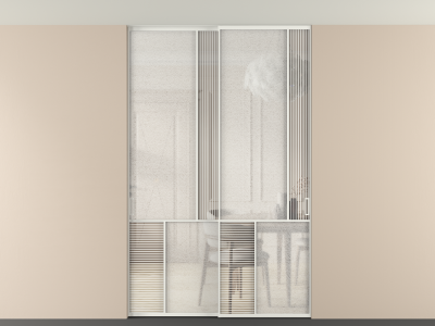 Во всех алюминиевых перегородках, независимо от типа установки, используется компланарный раздвижной механизм, благодаря которому декоративная крышка и полотно находятся в одной плоскости.