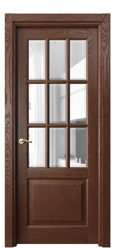 Лигнум 0748. Дуб коньячный брашированный Прозрачное стекло с фацетом