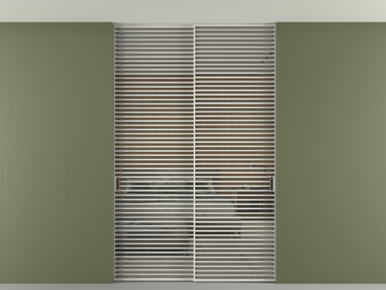Во всех алюминиевых перегородках, независимо от типа установки, используется компланарный раздвижной механизм, благодаря которому декоративная крышка и полотно находятся в одной плоскости.